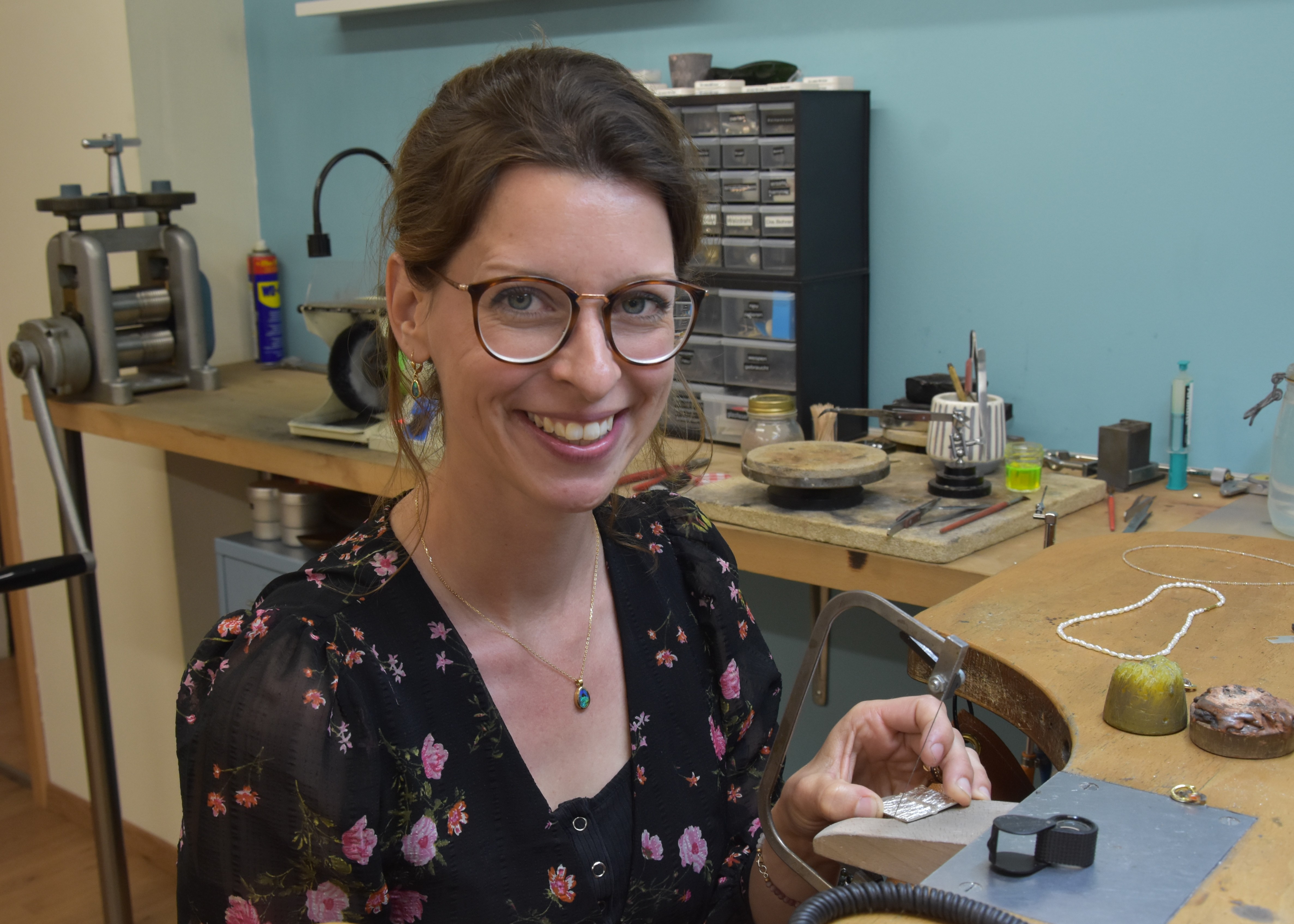 «Ich wusste nun, dass es in der vertrauten Umgebung sein musste – aber hier fand ich nichts», erzählt Lydia. Ihre Eltern ermutigten sie, sich selbständig zu machen. Lydia kaufte sich eine gebrauchte Grundausstattung für ihr Handwerk und setzte diesen Vorschlag um. Sie teilte sich einen grossen Raum mit anderen Kleinunternehmen im Gebäude ihrer Freikirche, wo viele Leute ein- und ausgingen. Im Schaufenster beim Eingang konnte sie ihre Produkte ausstellen und gewann immer mehr Kunden. Neun Monate später suchte sie sich ein grösseres Lokal, wo sie allein arbeitete. Vor sechs Jahren zog sie nochmals um und beschäftigt heute eine zweite Goldschmiedin. Dazu verkauft eine Opalschleiferin im gleichen Geschäft ihre Edelsteine, die von den beiden Künstlerinnen nach Kundenwunsch zu Schmuckstücken angefertigt werden.