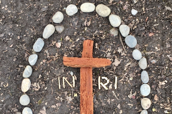 Auch dieses Jahr gibt es Möglichkeiten wie diese, Lasten zu benennen und abzulegen. Steine können entsprechend beschriftet und deponiert werden. Oder man wagt den Blick durch eine spezielle Brille, die eine andere Dimension aufzeigt. Vielleicht wird der Weg für den Osternachmittagsspaziergang der ganzen Familie genutzt? Oder ganz allein, früh am Ostermorgen.