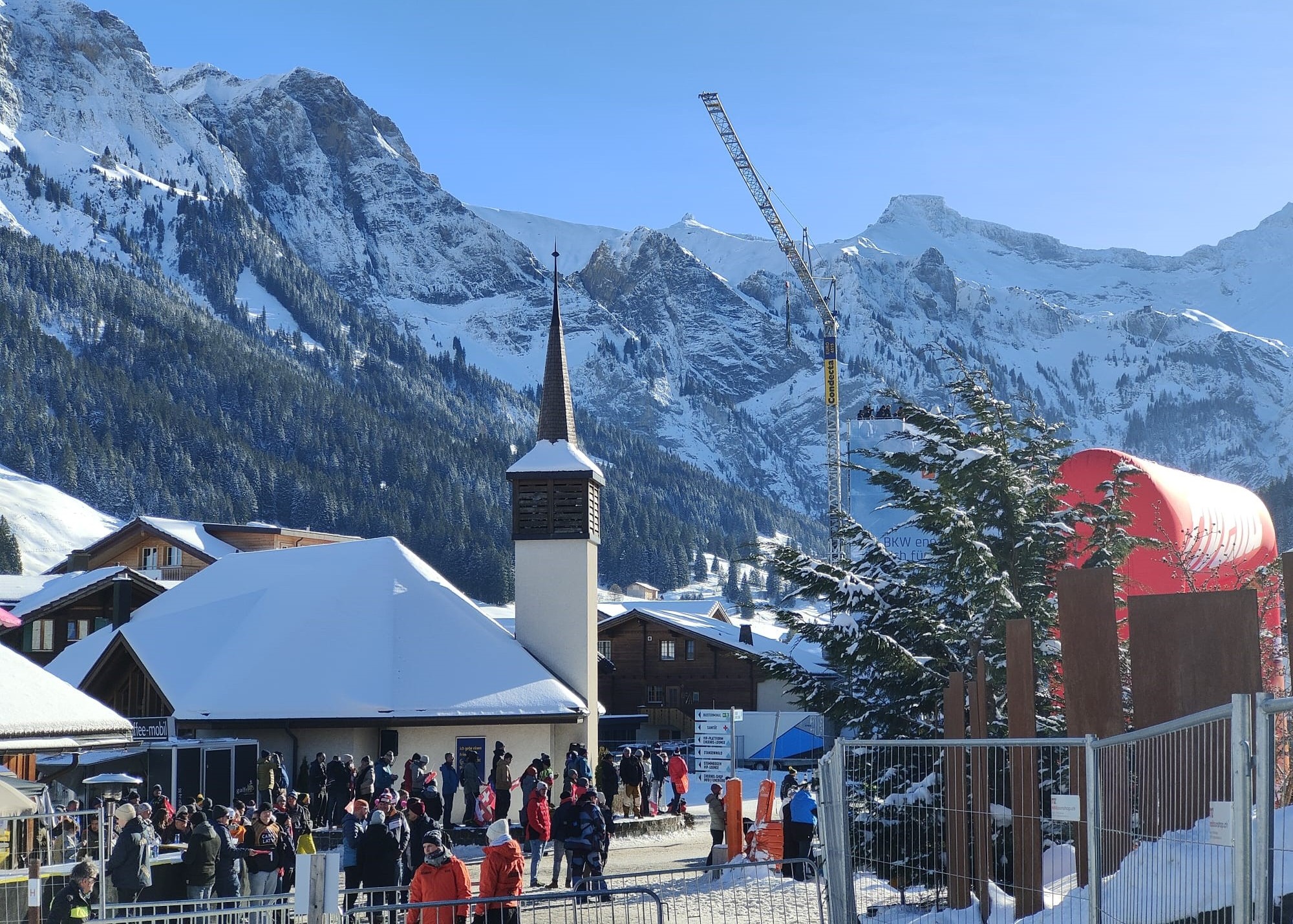 Durch den nationalen Trauertag am Freitag ergab sich jedoch eine neue Situation: Die sonst so freudigen Eröffnungsfeierlichkeiten mit Startnummernauslosung, Interviews und Rahmenprogramm wurden kurzfristig abgesagt. In dieser besonderen Stimmung kam das Organisationskomitee des Weltcups auf uns zu mit der Anfrage, ob wir die Kapelle bereits am Freitag öffnen könnten. So entstand spontan die Möglichkeit, einen Raum für Trauer, Gespräche und Stille anzubieten – für Menschen, die von den Ereignissen zu Jahresbeginn erschüttert waren. Neben persönlichen Begegnungen bestand auch die Möglichkeit, Gedanken im aufgelegten Kondolenzbuch festzuhalten. Persönlich habe ich diese Situation als sehr bewegend erlebt: Die Kirche wurde in einem unerwarteten Moment zu einem Ort, an dem Menschen mit ihren Fragen, Sorgen und ihrer Trauer willkommen waren.